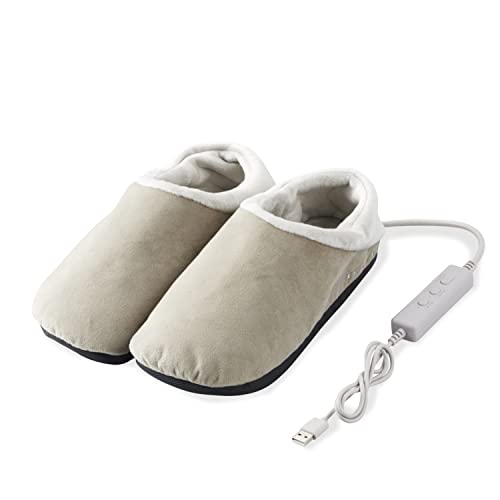 エレコム ルームシューズ フットウォーマー 電熱 USB給電式 ~28.0cm(目安) 3段階温度調整 最大約47℃ 温めタイマー機能付 モバイルバッテリー使用可 グレージュ HCW-FO02BE